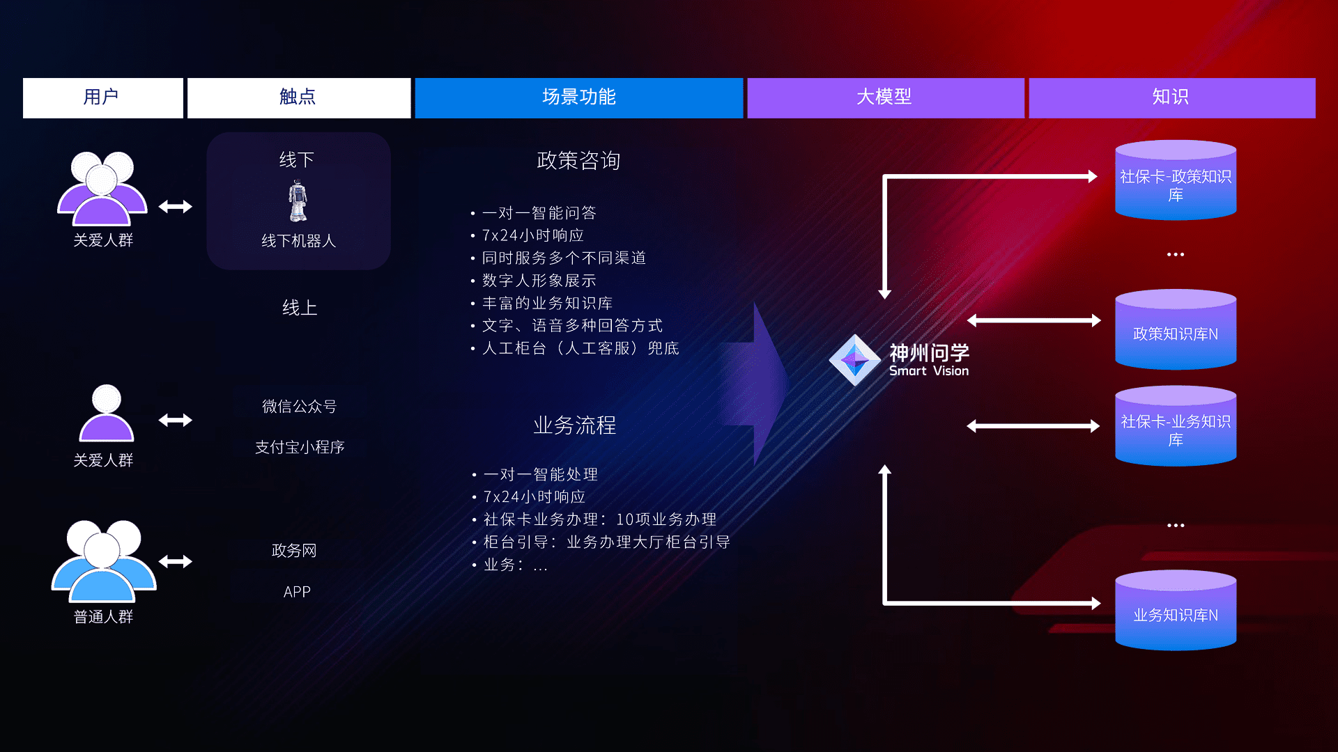 • 线上线下全覆盖:线上提供微信公众号、、、、支付宝小程序、、政务网、、、、app多种渠道,,与线下机器人形成完整服务体系。。。